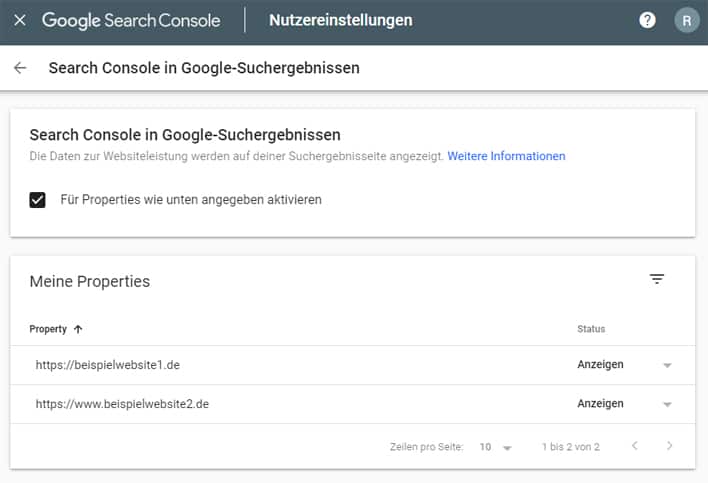 In der Google Search Console wurden Nutzern zwei neue Einstellmöglichkeiten gewährt. Sie können nun selbst definieren, welche Arten von Benachrichtigungen sie per E-Mail erhalten. Außerdem können sie bestimmen, ob in die Search Console eingeloggten Nutzern Leistungsdaten (Klicks und Impressionen) der Website oder des Shops in den Suchergebnissen angezeigt werden sollen. Wie genau das funktioniert, erklärt Google auf den Hilfeseiten zur Search Console.