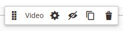 Um ein Video in das Seitenlayout einfügen zu können, muss zunächst links unter Media das Werkzeug Video gewählt und per Drag-and-drop an die gewünschte Stelle gezogen werden. Beim Mouse-over über das Video-Element erscheint ein grafisches Kontextmenü. Darin sind eine Reihe von Funktionen zum Bearbeiten des Elements enthalten.